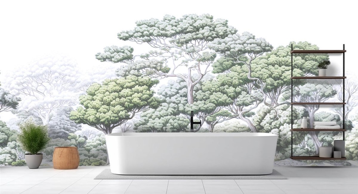 Nature-inspired designs, classic tile patterns, and spa-like murals are popular choices for Canadian bathrooms. These bathroom wallpaper ideas create calming atmospheres while coping with moisture exposure, from powder rooms to full bathrooms.