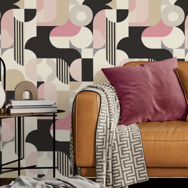 • Sale! Pink black and beige geometric art deco monochrome wallpaper available exclusively from Wallpaper Online Canada