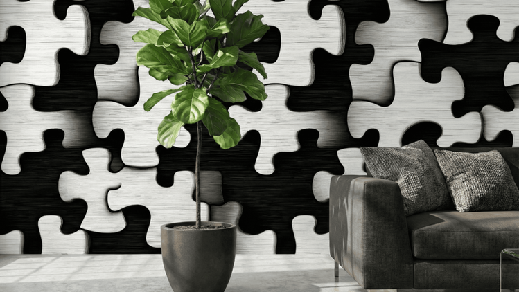 Transform your space with the intellectual intrigue and modern flair of our Abstract Jigsaw Mural. This dynamic design features a bold arrangement of oversized puzzle pieces, creating an eye-catching 3D illusion that adds significant depth and architectural interest to any flat wall.