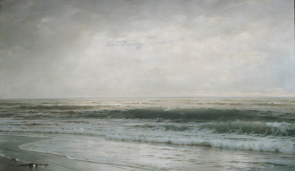 The muted color palette of stormy greys, soft seafoam greens, and warm overcast whites creates a deeply calming and sophisticated atmosphere. Perfect for a coastal-inspired living room, a tranquil master bedroom, or a relaxing bathroom sanctuary, this grand-scale mural adds incredible depth and a touch of historical elegance to any interior.