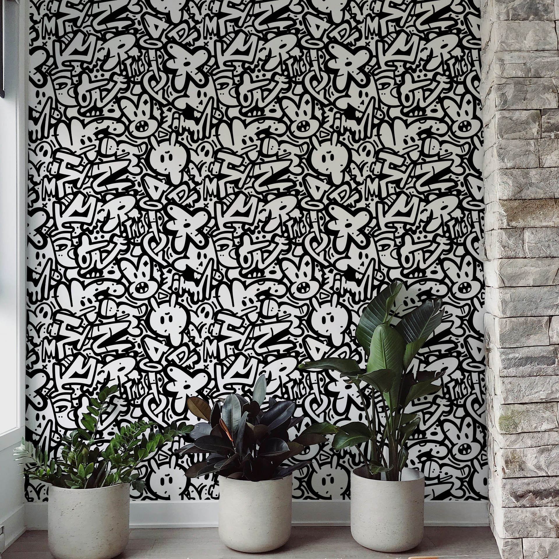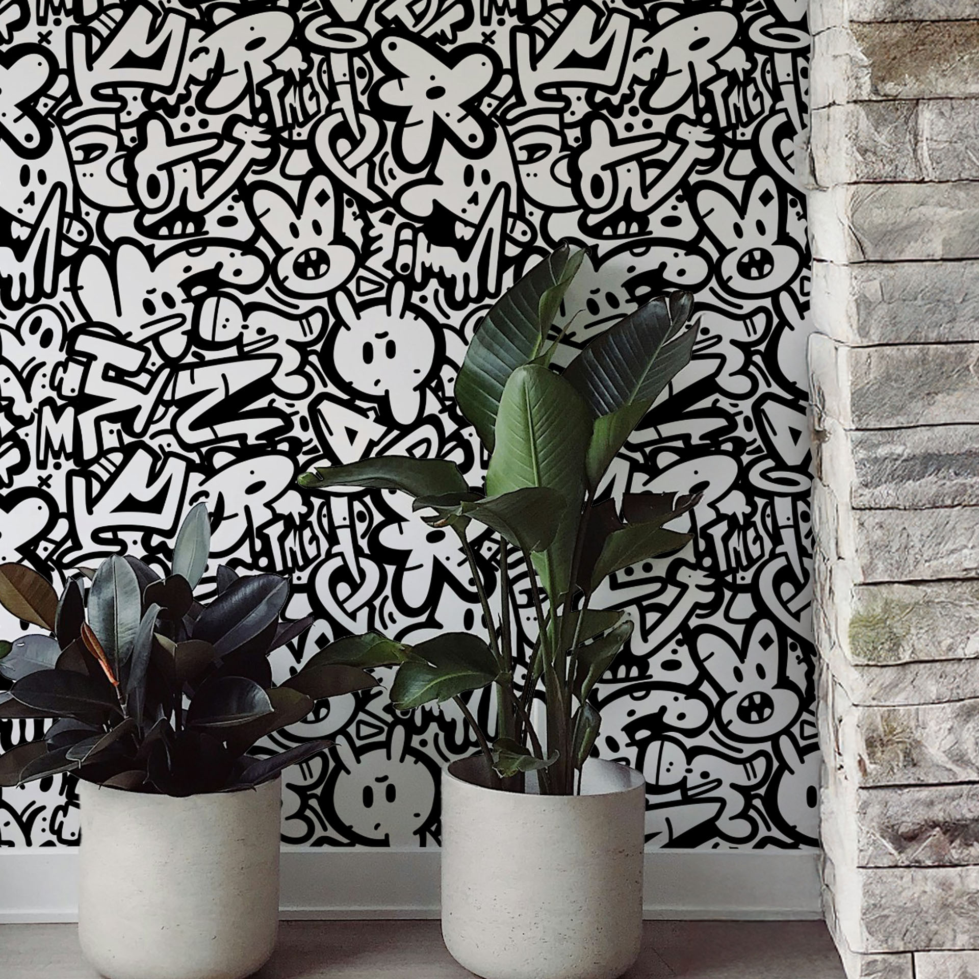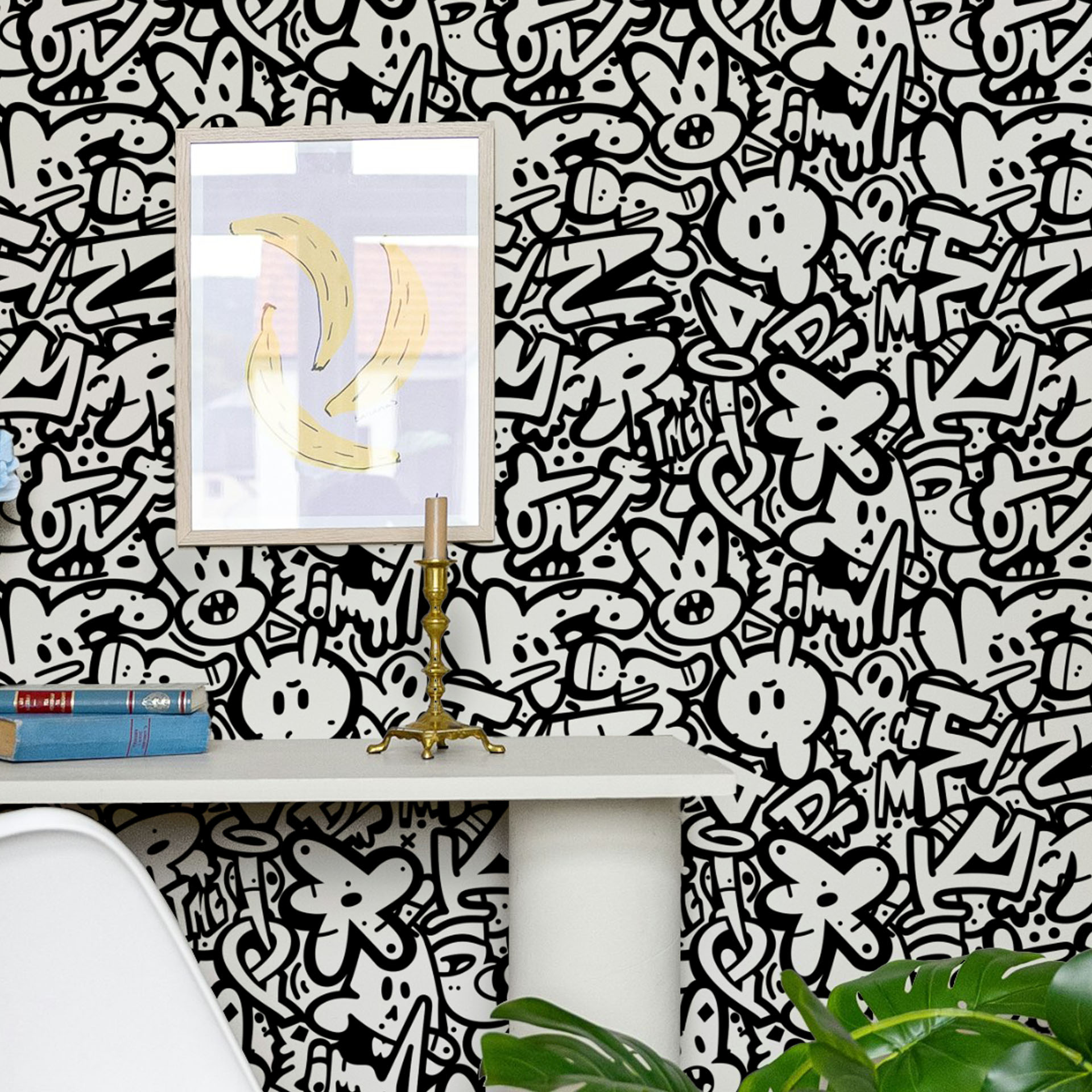 Unleash the rebellious charm of urban expression with our Block Graffiti Wallpaper. Designed in striking black and white, this wallpaper captures the raw creativity of graffiti art with cartoon-like characters, sketchy letters, and bold graphic forms. It’s a visual celebration of movement and modernity—ideal for creative studios, bedrooms, game rooms, or statement hallways. Whether you’re styling a teen room or curating an edgy accent wall, this design brings attitude and originality. Printed to order in your preferred material and scale, it’s a custom-fit masterpiece for any bold interior.