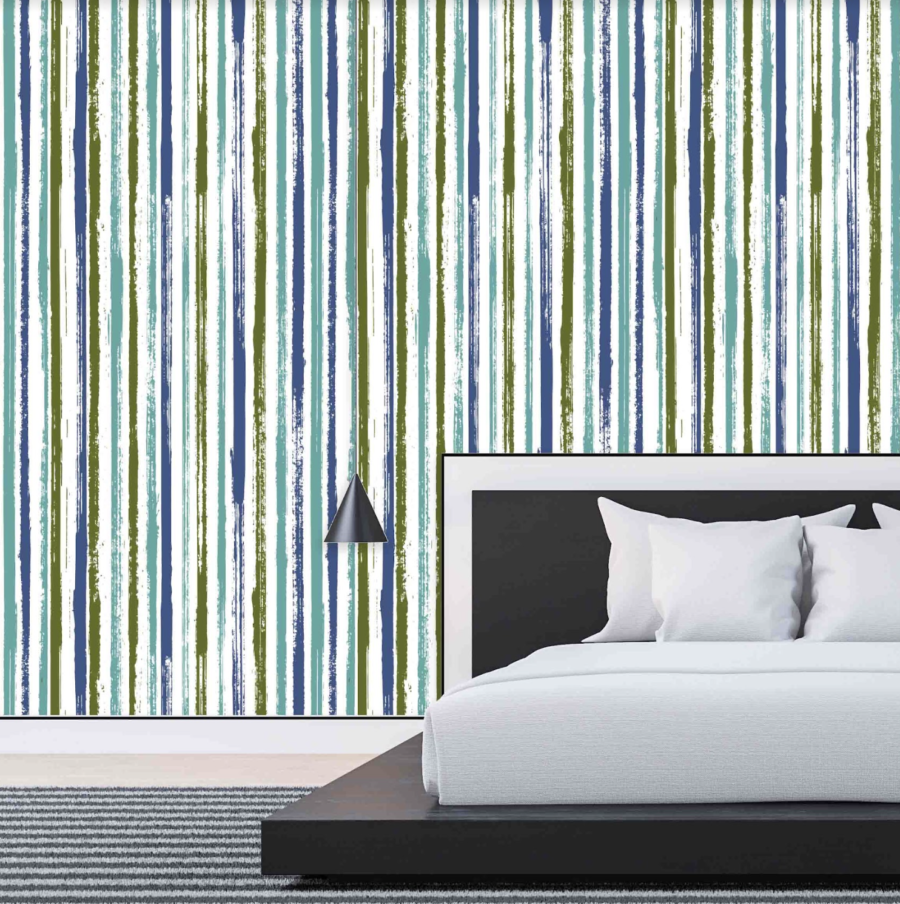 *Boho Ocean Stripes Wallpaper* brings nature indoors with lush greens and organic textures. This forest-inspired peel & stick mural is made in Canada, waterproof, removable, and ideal for rentals. Printed on a canvas-textured finish, it’s perfect for bathrooms, bedrooms, or meditation spaces – high-end design, low price.