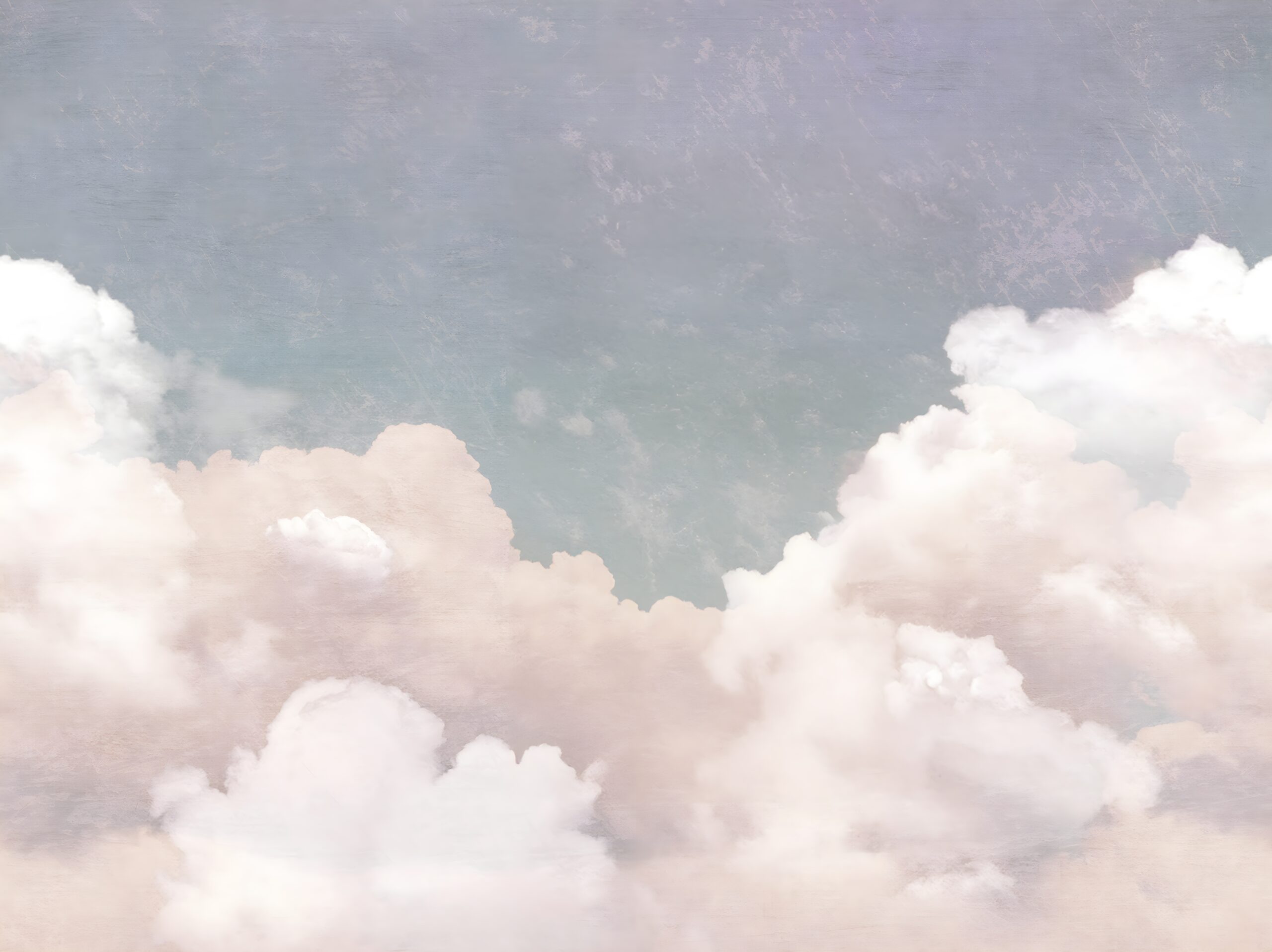 The background features a subtle, distressed fresco texture, adding a layer of vintage charm and artistic depth to the gentle pastel color palette of dusty pinks, muted lavenders, and faded blues. It is an absolutely perfect choice for creating a calming nursery, a romantic master bedroom, or a peaceful meditation space. The light and airy composition naturally opens up the room, making it feel expansive, cozy, and serene.
