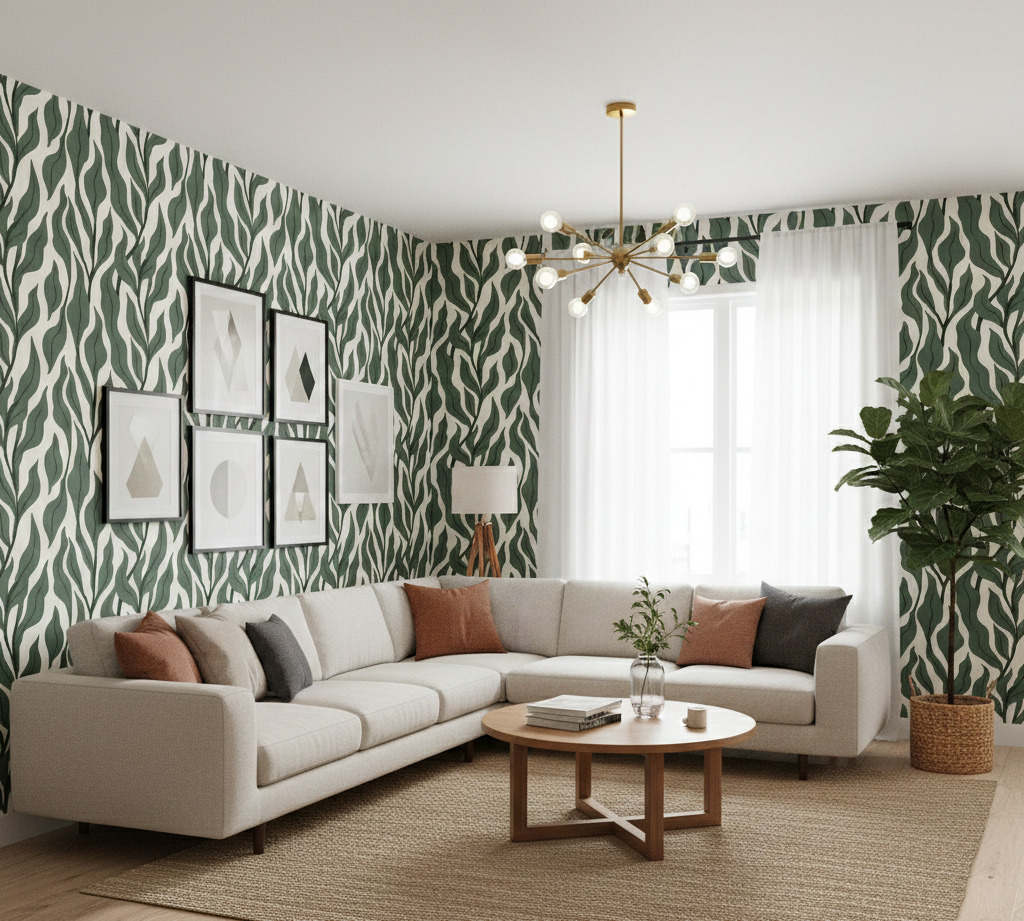The large scale of the pattern makes it an excellent choice for expanding the visual height of a room, while the simple two-tone palette ensures it remains versatile. Perfect for a modern living room, a tranquil bedroom, or a hallway that needs a touch of life, this wallpaper balances bold design with earthy tranquility.