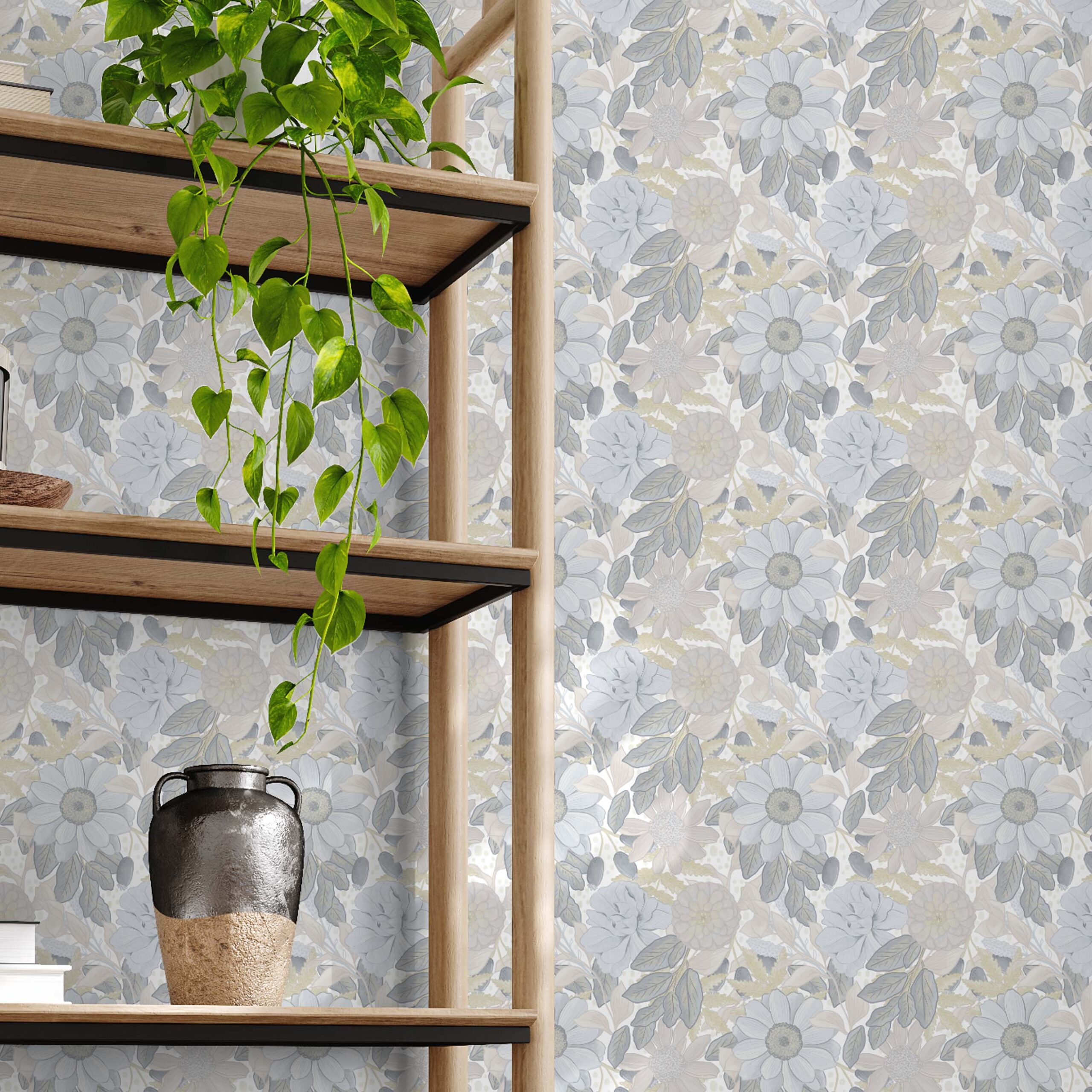 Inspired by wildflower meadows, the Garden Air wallpaper offers a subtle blend of powder blue petals, ivory blossoms, and soft olive-toned leaves. The delicate repeat pattern evokes the serenity of a quiet morning garden, perfect for creating calming atmospheres in bedrooms, reading nooks, or entryways. Designed for easy application, this peel and stick wallpaper is removable, washable, and renter-friendly. Bring soft natural elegance to your walls without long-term commitment.