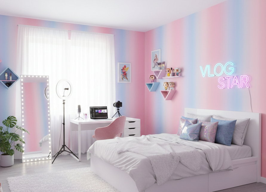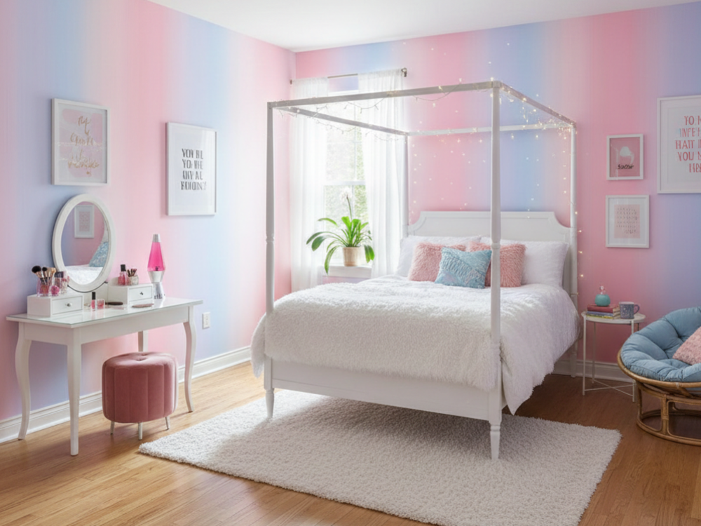 Perfectly suited for nurseries, modern bedrooms, or chic dressing areas, this wallpaper adds a subtle touch of color without overwhelming the senses. The vertical orientation of the gradient also serves to visually heighten your ceilings, lending an expansive, open feel to smaller rooms. Whether paired with contemporary white furniture or natural wood textures, this design brings a fresh, “cotton candy” elegance to any interior.