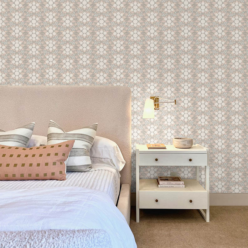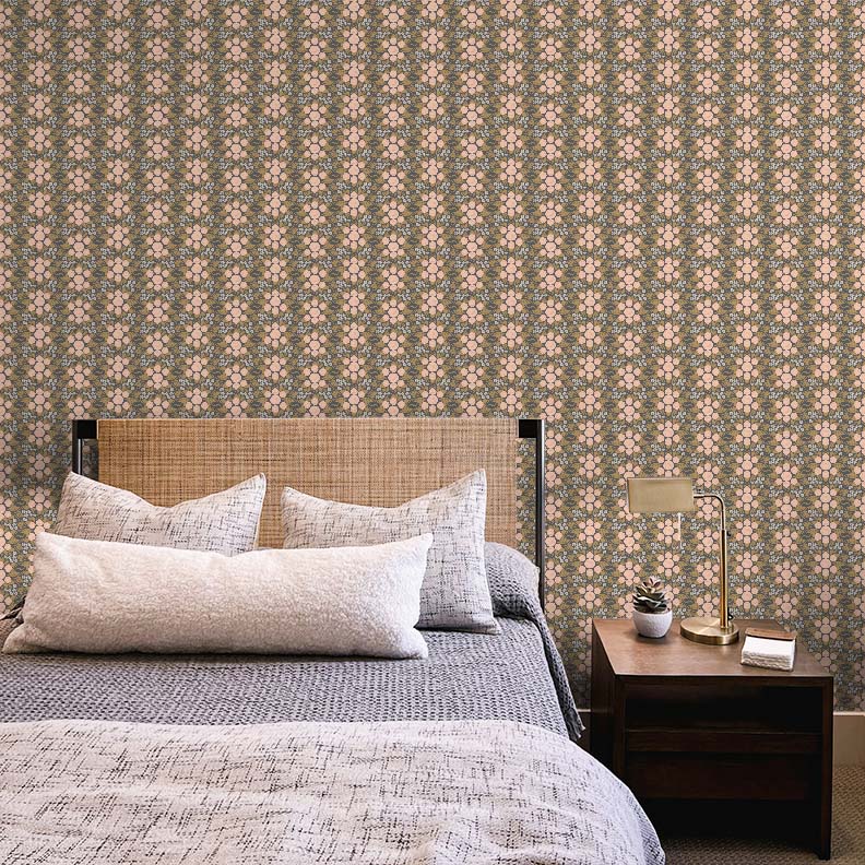 June Roses Wallpaper captures the essence of heirloom charm with its symmetrical rose medallions and finely detailed leaves arranged in a seamless repeat. Ideal for both traditional and contemporary interiors, this versatile pattern is available in a palette of muted, earthy tones and soft pastels to suit any design mood. Whether you’re styling a romantic bedroom, a calm office nook, or a serene living space, June Roses brings a graceful and grounded atmosphere. Printed to order on peel & stick or traditional wallpaper, it’s as easy to install as it is to admire.
