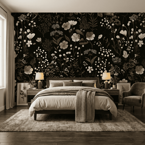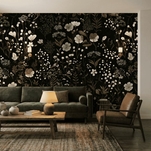 Immerse yourself in nature’s quiet mystery with the Midnight Meadow Mural. Unlike standard wallpaper, this mural offers a larger-scale interpretation of our beloved dark botanical print, designed to turn a single wall into a breathtaking work of art.