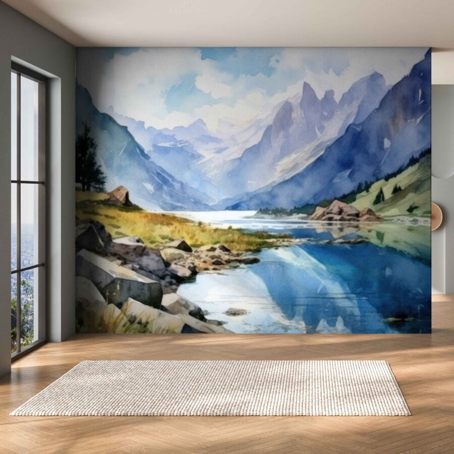 *Mural Alpine Serenity* brings nature indoors with lush greens and organic textures. This forest-inspired peel & stick mural is made in Canada, waterproof, removable, and ideal for rentals. Printed on a canvas-textured finish, it’s perfect for bathrooms, bedrooms, or meditation spaces – high-end design, low price.