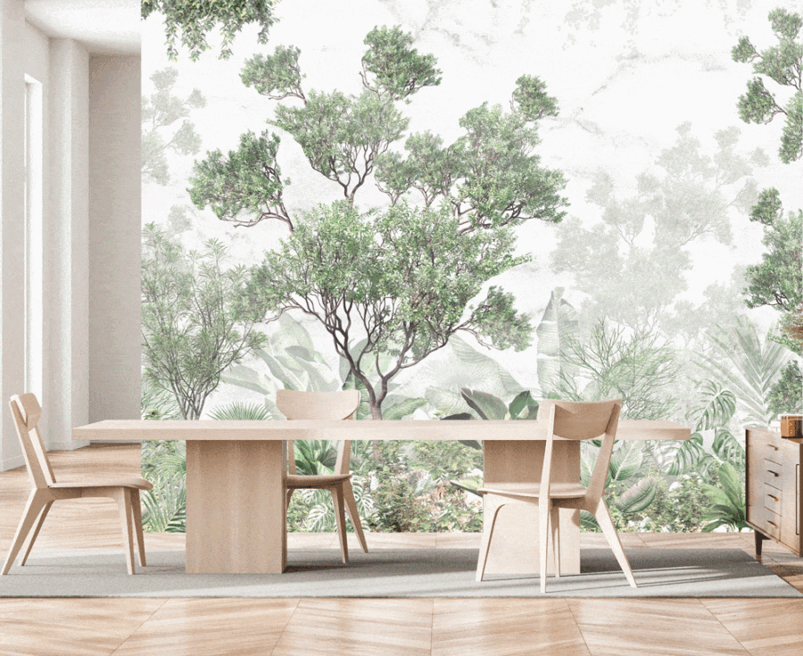 *Mural Cabot Forest* brings nature indoors with lush greens and organic textures. This forest-inspired peel & stick mural is made in Canada, waterproof, removable, and ideal for rentals. Printed on a canvas-textured finish, it’s perfect for bathrooms, bedrooms, or meditation spaces – high-end design, low price.