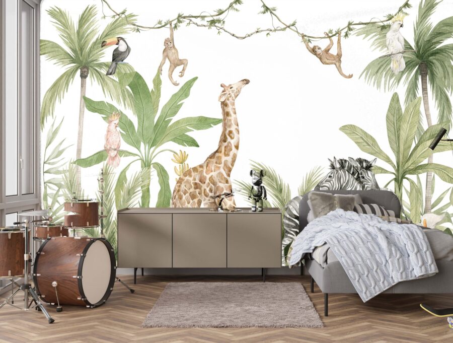 *Mural Jungle Jamboree* brings nature indoors with lush greens and organic textures. This forest-inspired peel & stick mural is made in Canada, waterproof, removable, and ideal for rentals. Printed on a canvas-textured finish, it’s perfect for bathrooms, bedrooms, or meditation spaces – high-end design, low price.