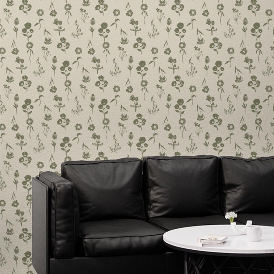 Oxford Court Floral Wallpaper combines the quiet sophistication of a vintage botanical sketchbook with the modern appeal of neutral tones and clean design. The wallpaper features scattered, fine-line floral elements in an earthy olive green, gently arranged across a creamy beige backdrop. The minimalist pattern gives breathing room to any interior, allowing light and textures to take center stage without overpowering the decor.