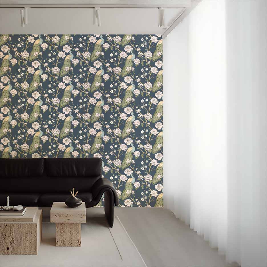 Printed to order in Canada using premium materials, Peacock Chinoise Wallpaper is available in peel & stick, canvas-textured peel & stick, and traditional paste-the-wall options. Each order is custom-sized to your wall dimensions, ensuring a seamless, tailored installation and a high-end finish.
