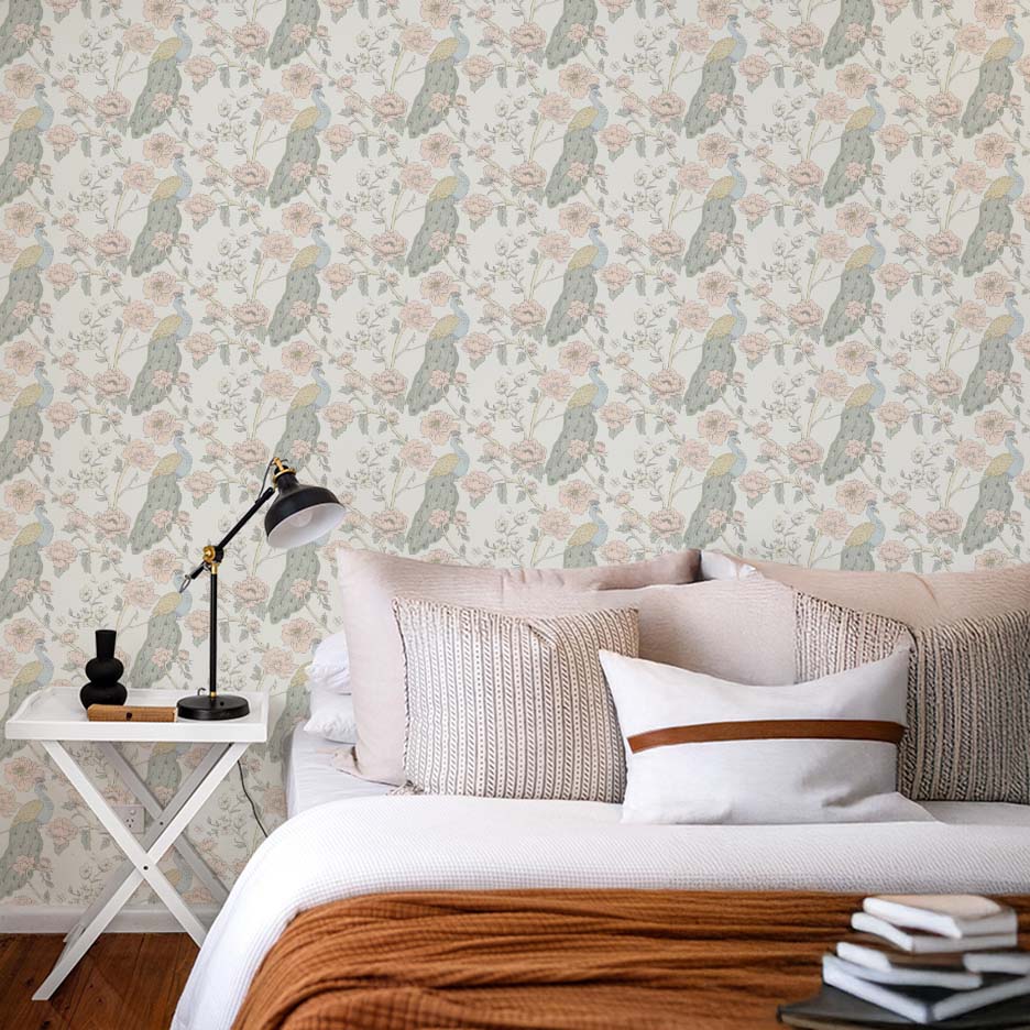 Perfect for living rooms, bedrooms, dining spaces, powder rooms, and statement walls, Peacock Chinoise Wallpaper pairs beautifully with natural woods, stone surfaces, antique accents, and modern sculptural furniture. Lighter colourways feel soft and airy, while darker backgrounds create a bold, moody elegance ideal for dramatic interiors.