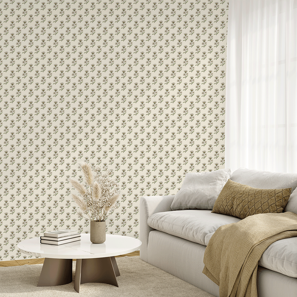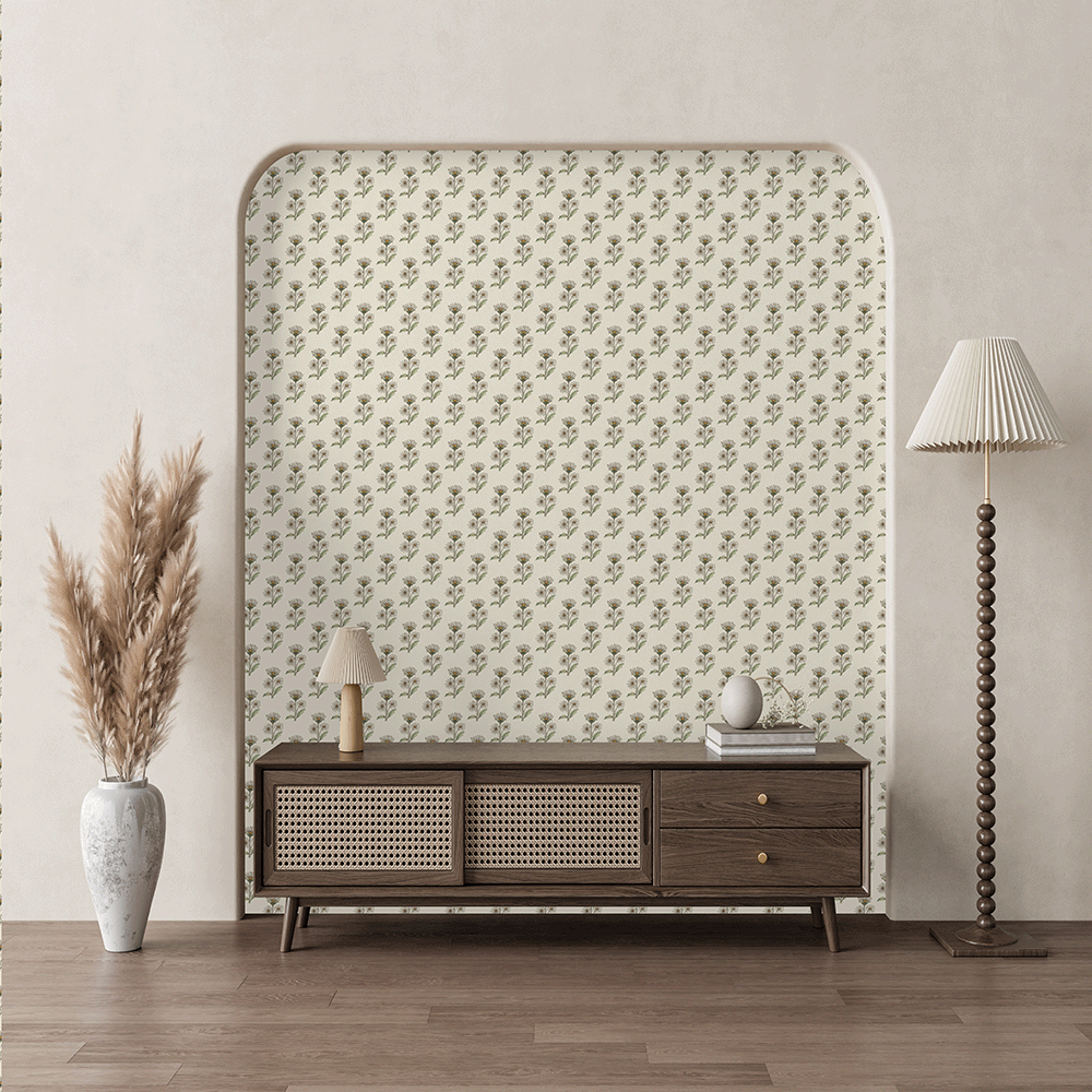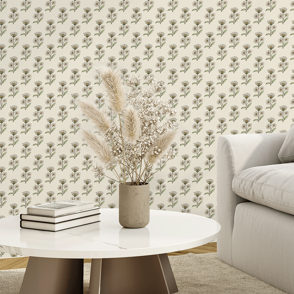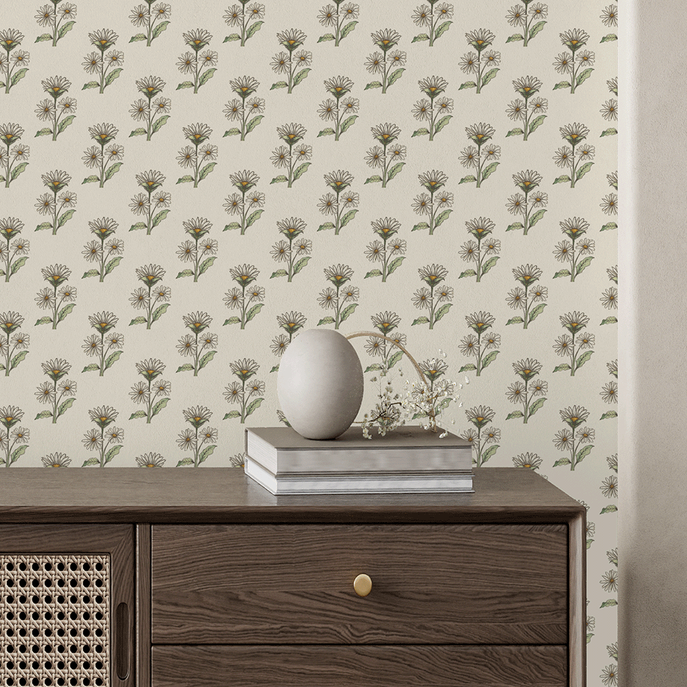 Vintage Playfulness with Retro Whimsy Daisy Wallpaper – Add a hint of floral nostalgia to your space with Retro Whimsy Daisy, a peel and stick wallpaper featuring rows of petite hand-drawn daisies in soft beige and olive tones. This charming pattern sits on a creamy neutral backdrop, creating a balanced, airy look that feels both vintage and fresh. Ideal for living rooms, bedrooms, or craft areas, it’s printed on commercial-grade removable wallpaper that’s washable, repositionable, and renter-friendly for easy styling with no long-term commitment.