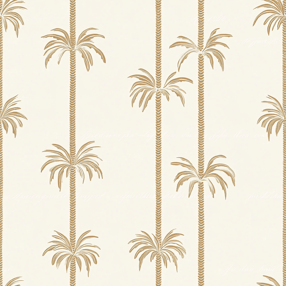 The artwork features delicate, hand-sketched palm fronds sprouting from tall, textured vertical trunks, creating a striped effect that helps elongate your walls and add height to any room. Subtle, ghostly script is layered into the cream background, providing a vintage, “explorer’s journal” feel that adds depth and history to the space. It’s the perfect choice for a refined home office, a global-inspired living room, or a neutral nursery with an adventurous spirit.