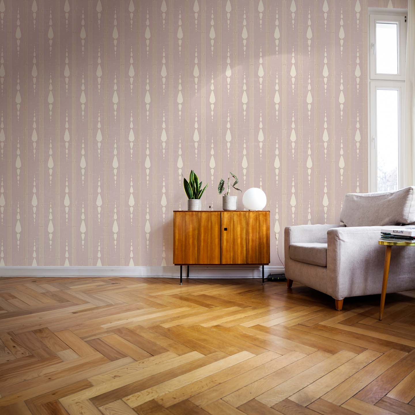 The Garden Room Wallpaper in Dusty Blush brings together structured geometric elegance and a warm, muted colour palette. Featuring elongated vertical motifs inspired by art deco design, this wallpaper adds height and sophistication to any space. The dusty blush background is softened with subtle texture, making it ideal for contemporary interiors seeking warmth without overpowering colour. Perfect for living rooms, dining areas, or feature walls, it pairs beautifully with natural wood finishes, soft neutrals, and modern décor elements to create a calm yet elevated atmosphere.