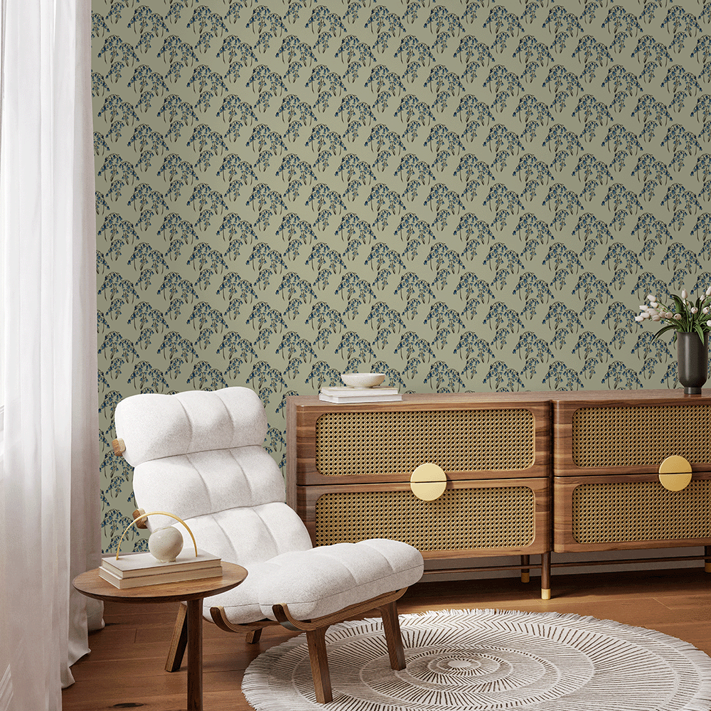 Timeless Elegance with Westcott Bluebells Wallpaper – Bring charm and sophistication into your space with Westcott Bluebells, a vintage-inspired peel and stick wallpaper featuring elegant hand-illustrated bluebell florals cascading across a calming sage green background. This pattern adds refined botanical beauty to bedrooms, hallways, or reading corners. Printed on high-quality removable wallpaper, it’s ideal for renters or homeowners seeking a classic floral look with modern installation convenience—easy to apply, reposition, and remove without damage.